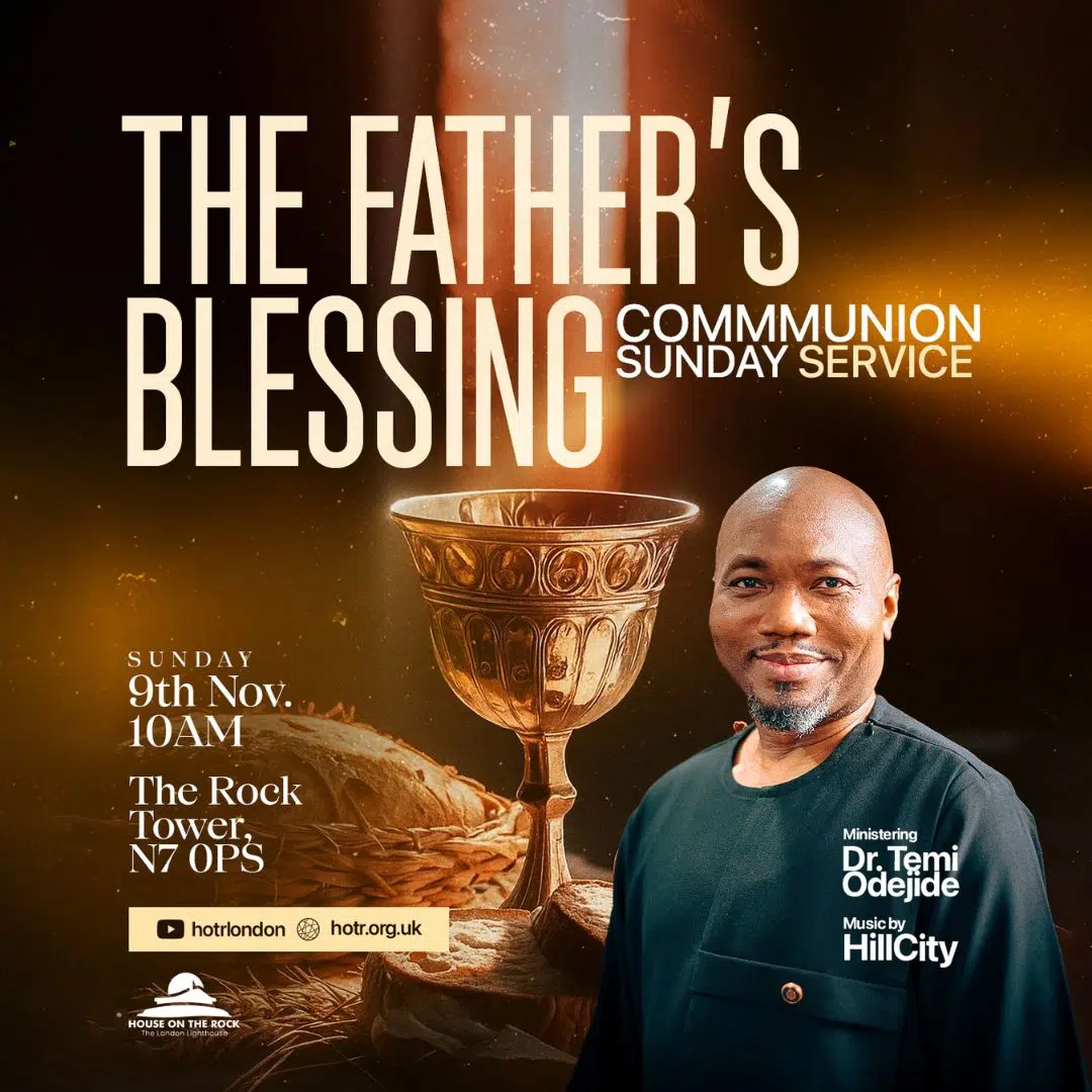 Join us this Sunday at House On The Rock London for a powerful Communion Service themed “The Father’s Blessing.” Experience a time of worship, the Word, and the release of divine favour as we receive Heaven’s blessing for this season of Great Blessing (Malachi 3:18 / Ephesians 1:3).